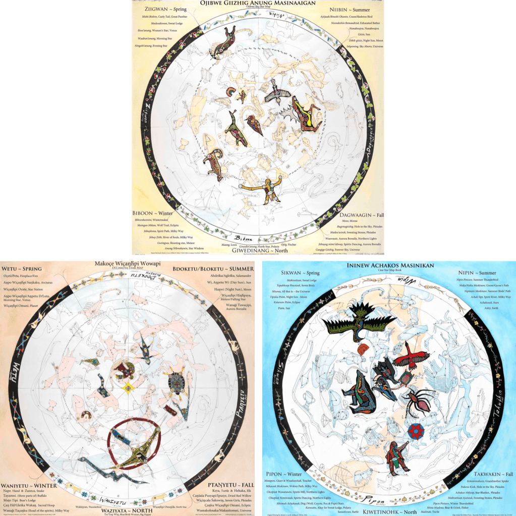 Quando la maggior parte di noi guarda il cielo notturno, siamo abituati a vedere storie non di origine indigena, ma di origine greca o romana: Andromeda incatenata a una roccia, Perseo che stana un mostro marino, Ercole che sconfigge un leone. Ma proprio come le persone delle prime civiltà occidentali guardavano le stelle e ne raccontavano le storie, così hanno fatto anche gli indigeni di tutto il mondo. Nelle comunità nordamericane, le stelle ospitano orsi, capanne della purificazione, tuoni temporaleschi e altro ancora.